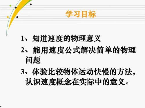 那么,物理运动的快慢究竟是如何定义的呢?其实,它有一个专业的术语,叫做“速度”。速度是指物体在单位时间内所移动的距离。简单来说,就是物体移动得快还是慢。