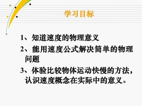 那么,物理运动的快慢究竟是如何定义的呢?其实,它有一个专门的物理量——速度。速度是指物体在单位时间内所移动的距离,通常用米/秒(m/s)来表示。